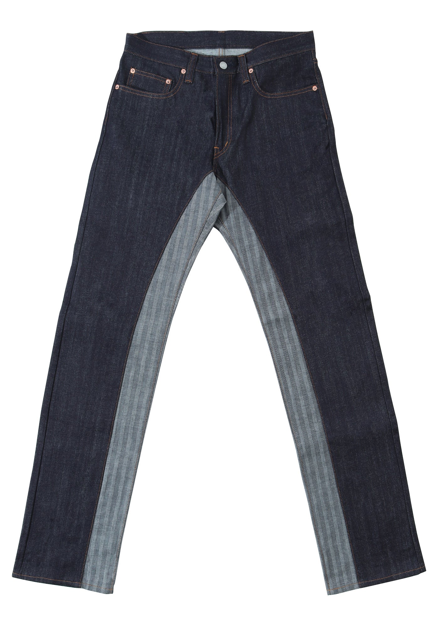 This stylish take on classic 5-pocket jeans features a bold inverted U-shaped panel at the inseam, a signature design element...