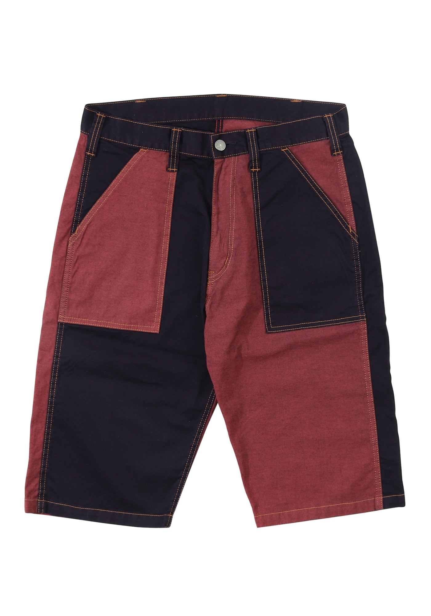 Overdyed multi shorts with fabric switched from one part to another and dyed afterwards. Available in two colors, Sedona orange...